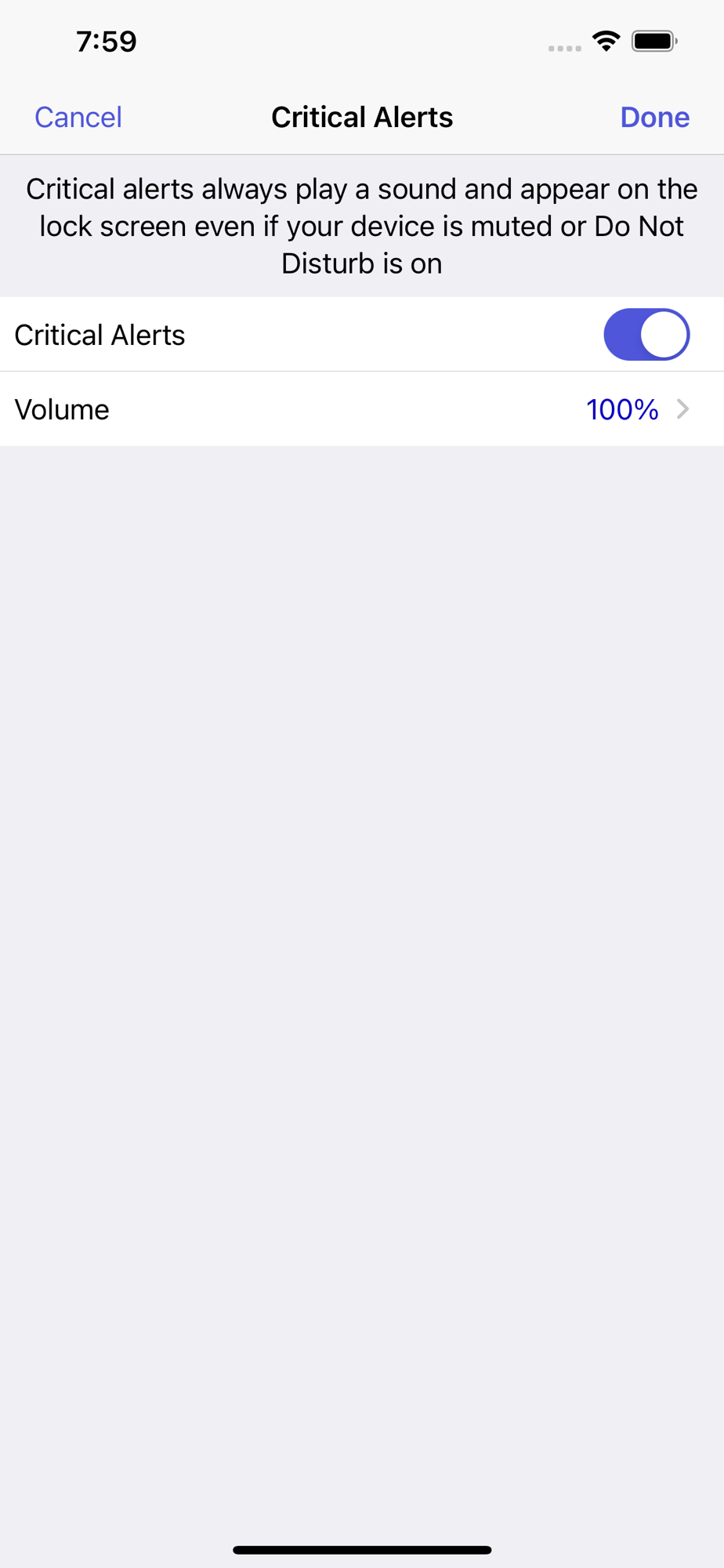 Critical Alerts always play a sound and appear on the lock screen even if your device is muted or Do Not Disturb is on. They are optional and can be enabled or disabled in settings.