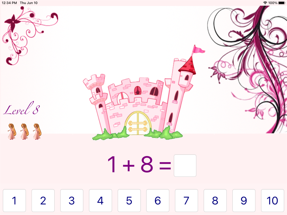 Der Schwierigkeitsgrad wird mit jeder Runde erhöht, so dass das Spiel auch noch nach vielen Runden nicht an Reiz verliert. In den späteren Runden kommen weitere Aufgabentypen dazu: zunächst Subtraktion und später Aufgaben vom Typ 3 + ? = 5 (eingetragen werden muss dann 2). Noch später werden verkettete Aufgaben gestellt (2 + 4 -1 = ?). Wer das Schloss vollständig in der 20. Runde gebaut hat, bekommt Zufallsaufgaben, die dann auch Multiplikation und Division enthalten. So können die Kinder auch später testen, wie weit sie mit maximal drei Fehlern kommen.