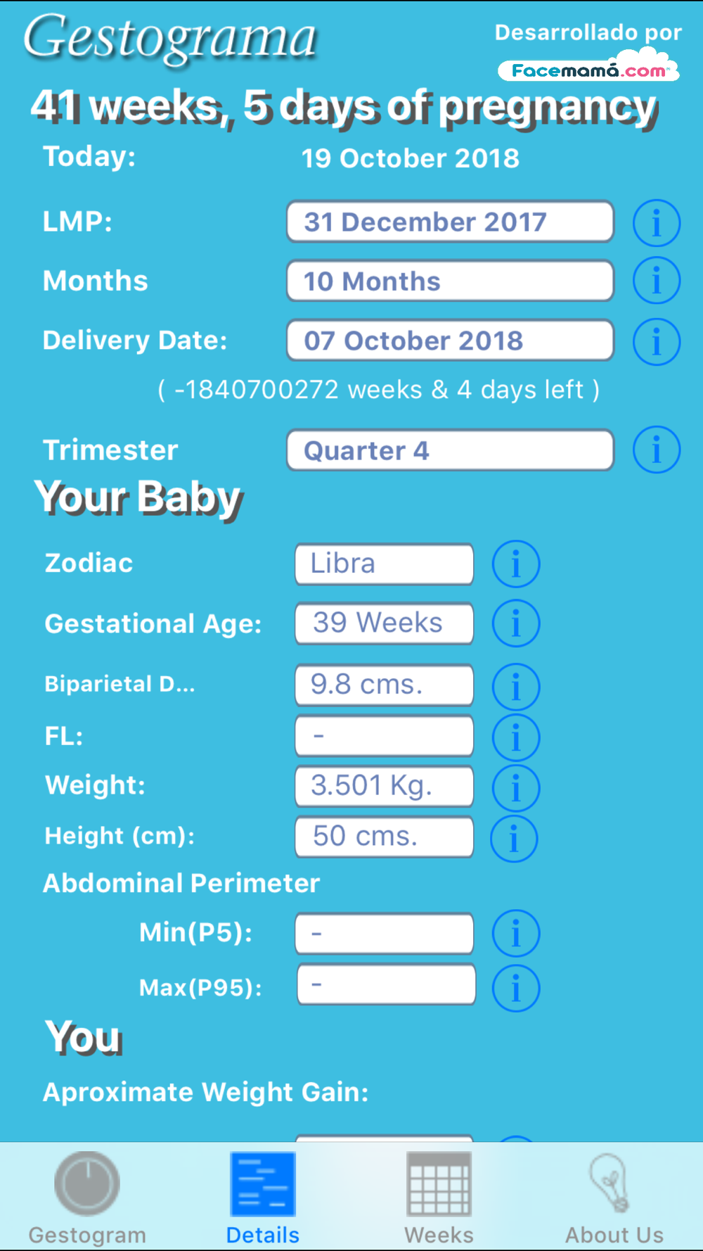 Like your doctor does at each control with a Pregnancy Wheel (also called gestational Disc, Obstetric Wheel, or Pregnancy Calculator), today through Gestograma of Facemamá.com, you will be able to access from your iPhone to everything you need to know about the development of your pregnancy.