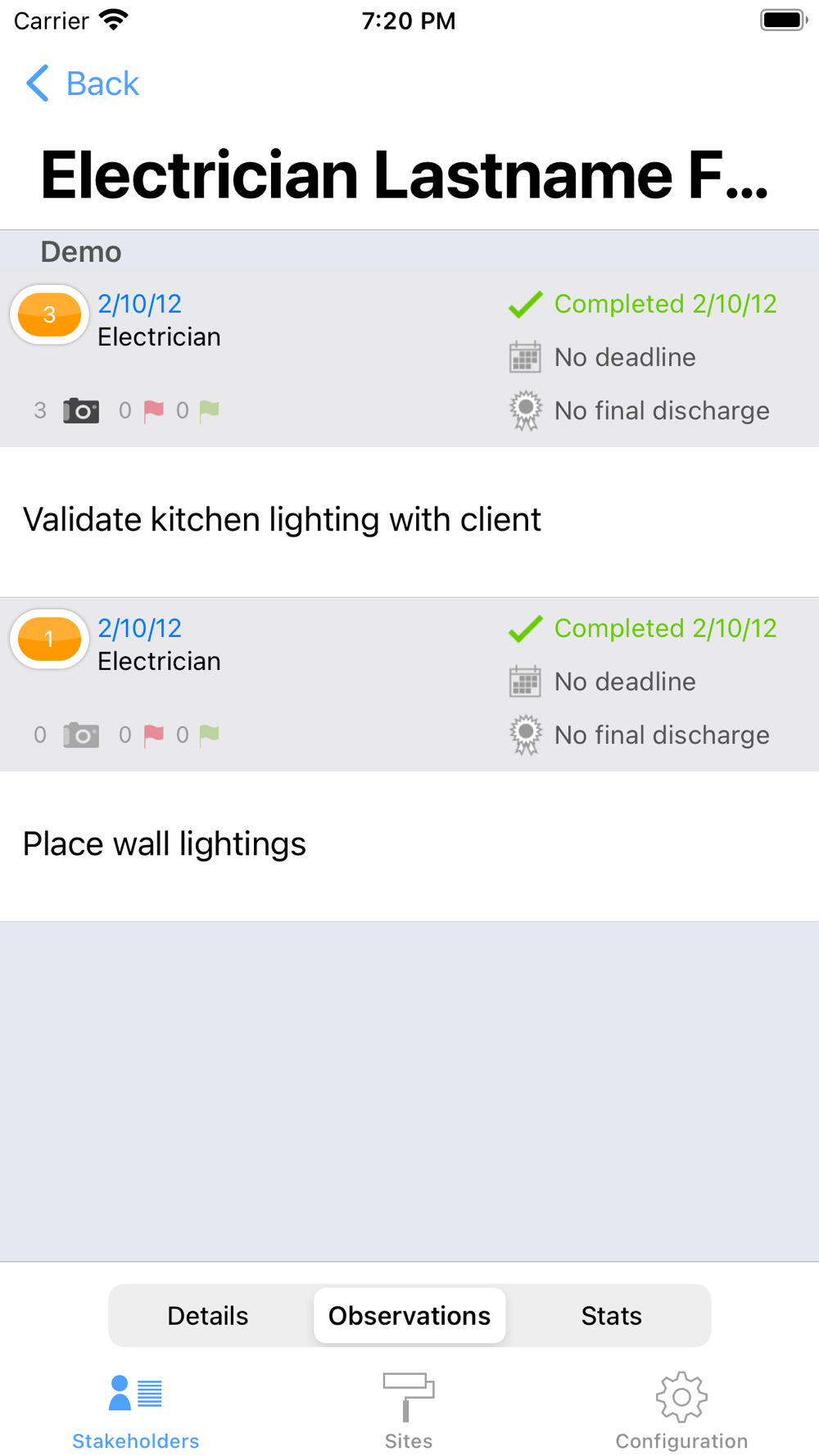 - Quick overview of observations (punch/snag list items) classified by stakeholder.