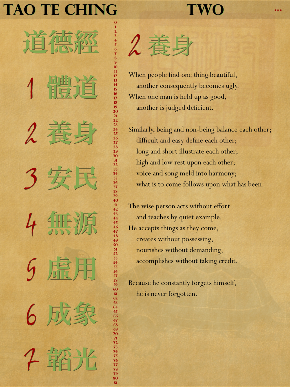Brian Browne Walker’s contemporary translations of Taoist classics have received high marks for their simplicity, clarity, and accessibility. This beautiful and functional app, which you can read in a linear fashion like a book or receive random readings from, and which allows you to email any selection to a friend with the click of a button, will be a beloved friend for years.