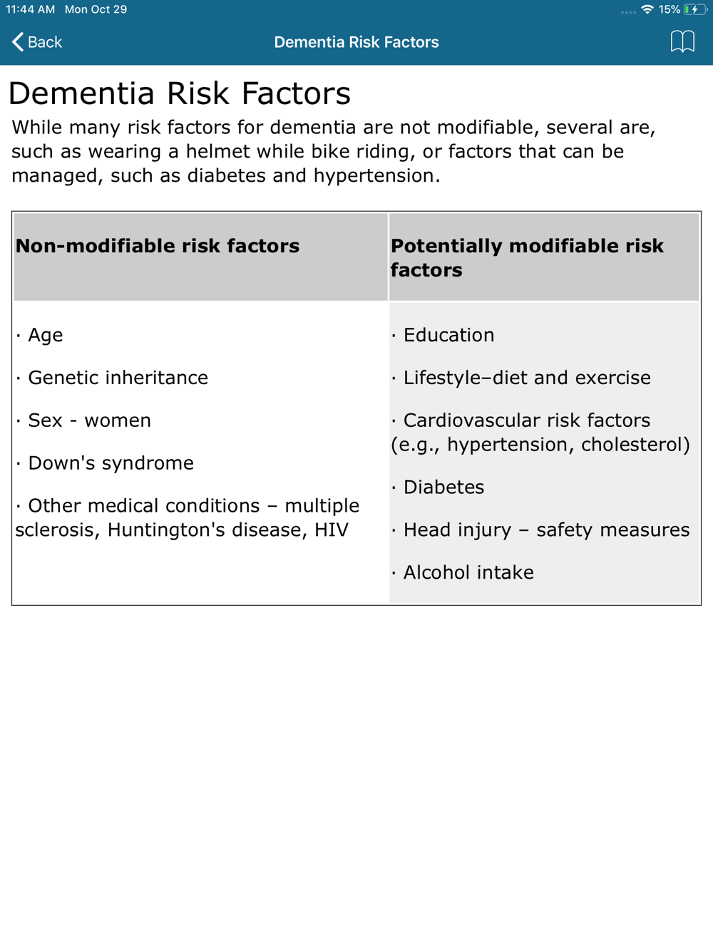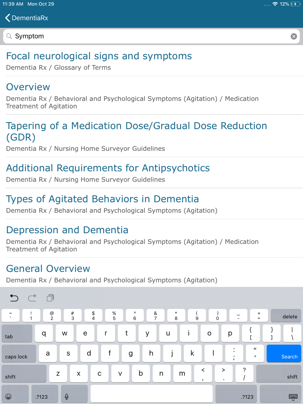 This quick reference guide for the iPhone and iPad is intended to provide the busy practitioner with an easy-to-use, practical resource for managing patients with dementia. The app is based on the widely distributed book, “A Pocket Guide to Dementia and Associated Behavioral Symptoms: Diagnosis, Assessment, and Management.”