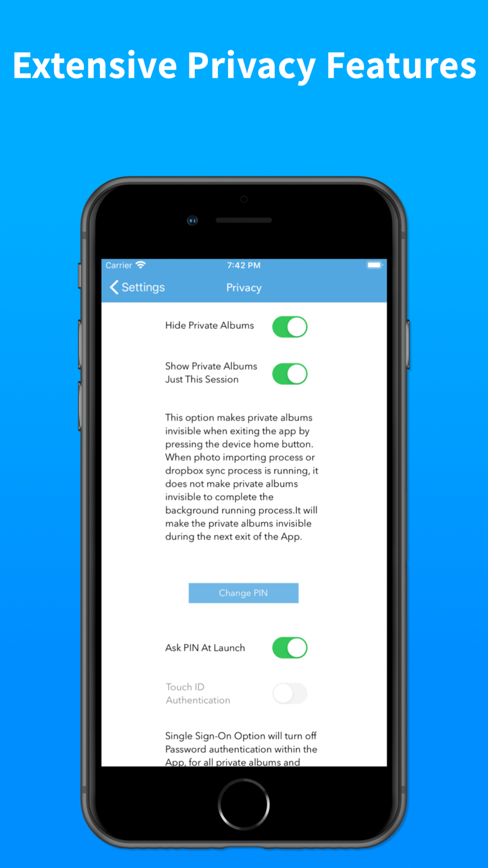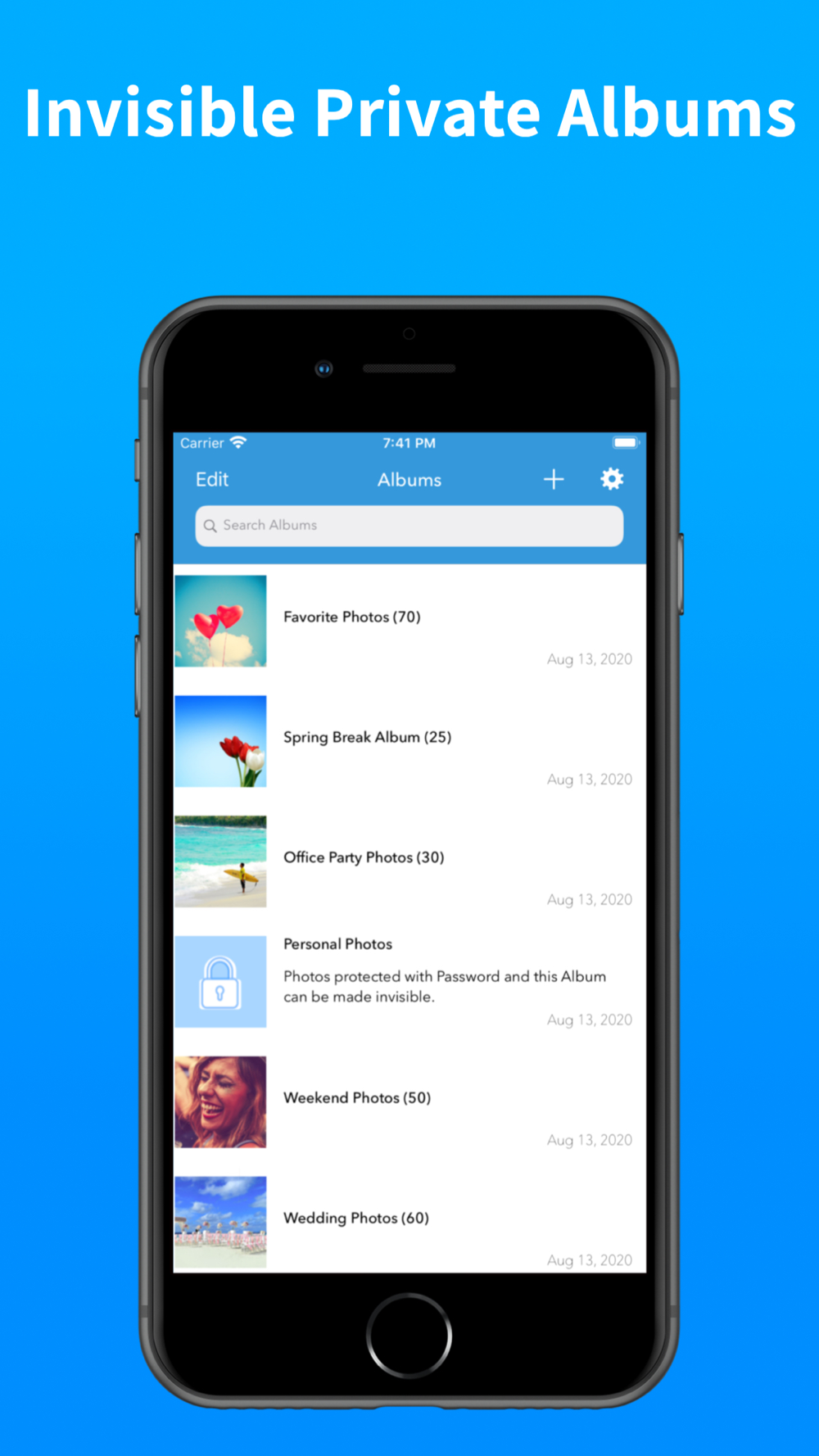+ Three layers of privacy with passcode, password and invisible mode for private albums.