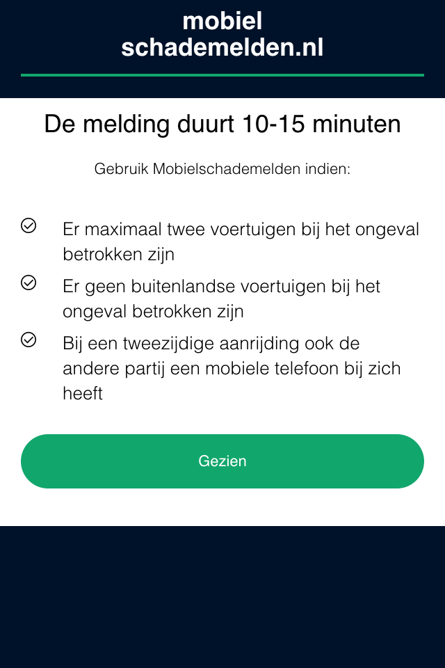 Bij een aanrijding tussen twee voertuigen moet een van de partijen een smartphone hebben en de andere partij ten minste een mobiele telefoon.