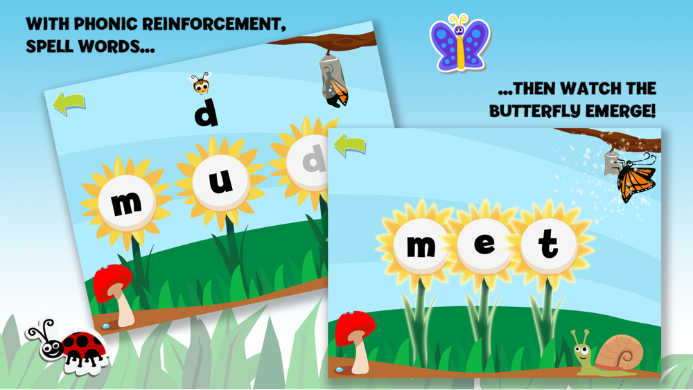 * Watch a butterfly emerge from its chrysalis as you progress