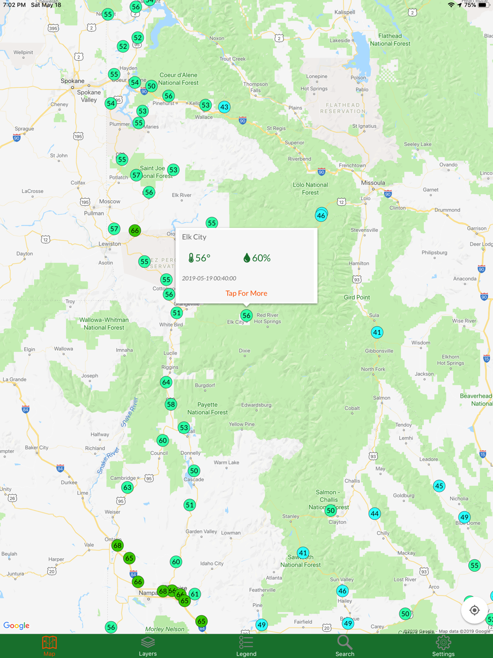 Idaho Traveler shows you the current conditions of major roads and highways throughout Idaho. You can view traffic cameras, read alerts about road closures, get stats from weather stations, and read roadside signboard messages. You can also view road overlays that tell you the current surface conditions.