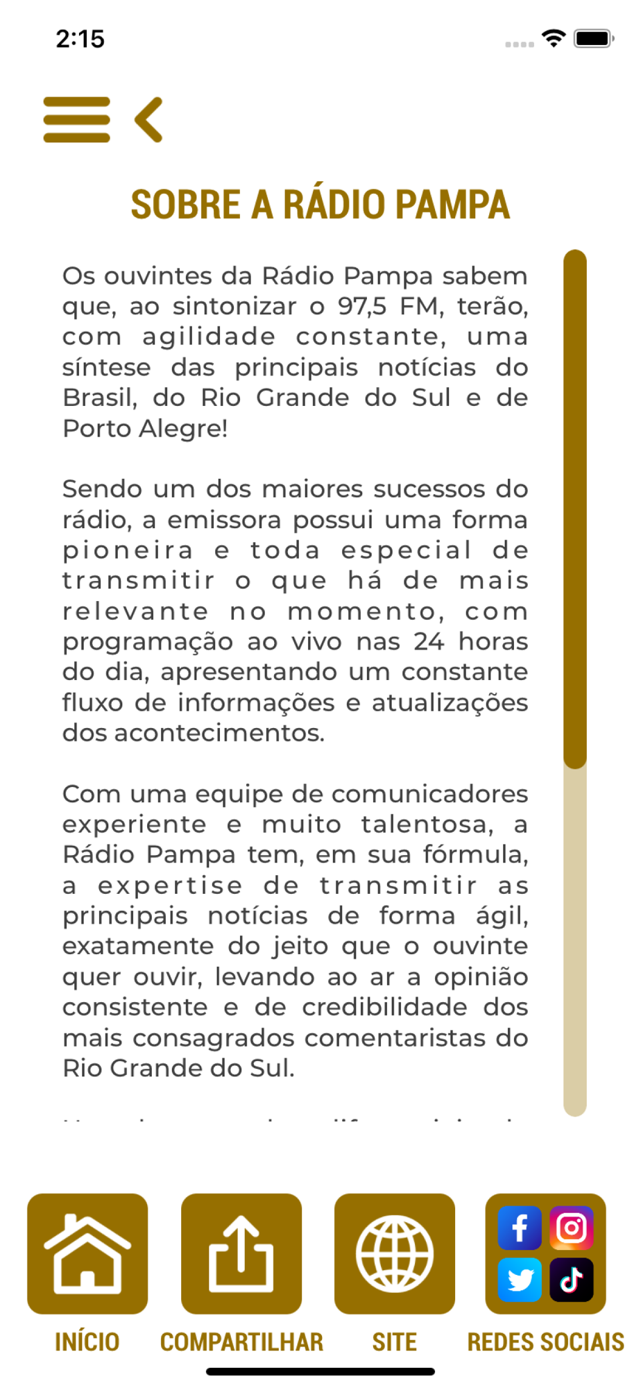 Aplicativo da Rádio Pampa, uma emissora da Rede Pampa de Comunicação.