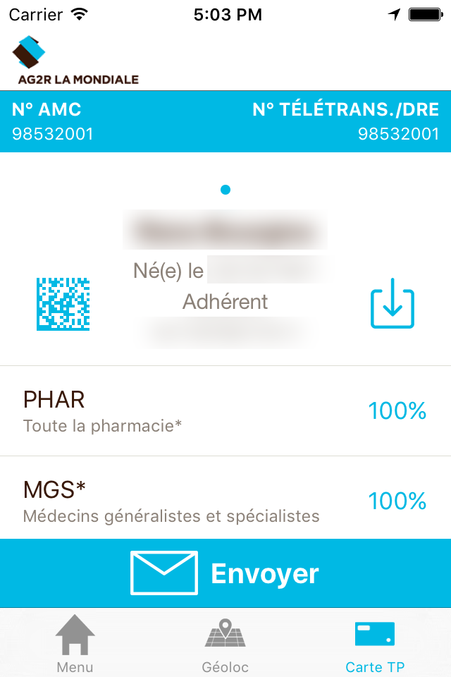 - l’affichage de sa carte de tiers payant dématérialisée. Grace à cette nouveauté, l’assuré et sa famille disposent à tout moment de leur carte à jour et à portée de main!