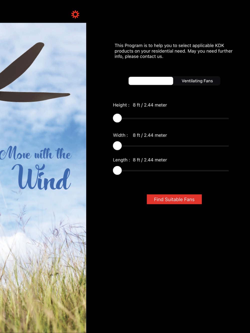 Are you looking for a suitable fan for you residence? Do not know which model best suits your room? This KDK application is able to calculate and recommend you the best suited model for both ceiling fan and ventilation fan based on your room's requirement.