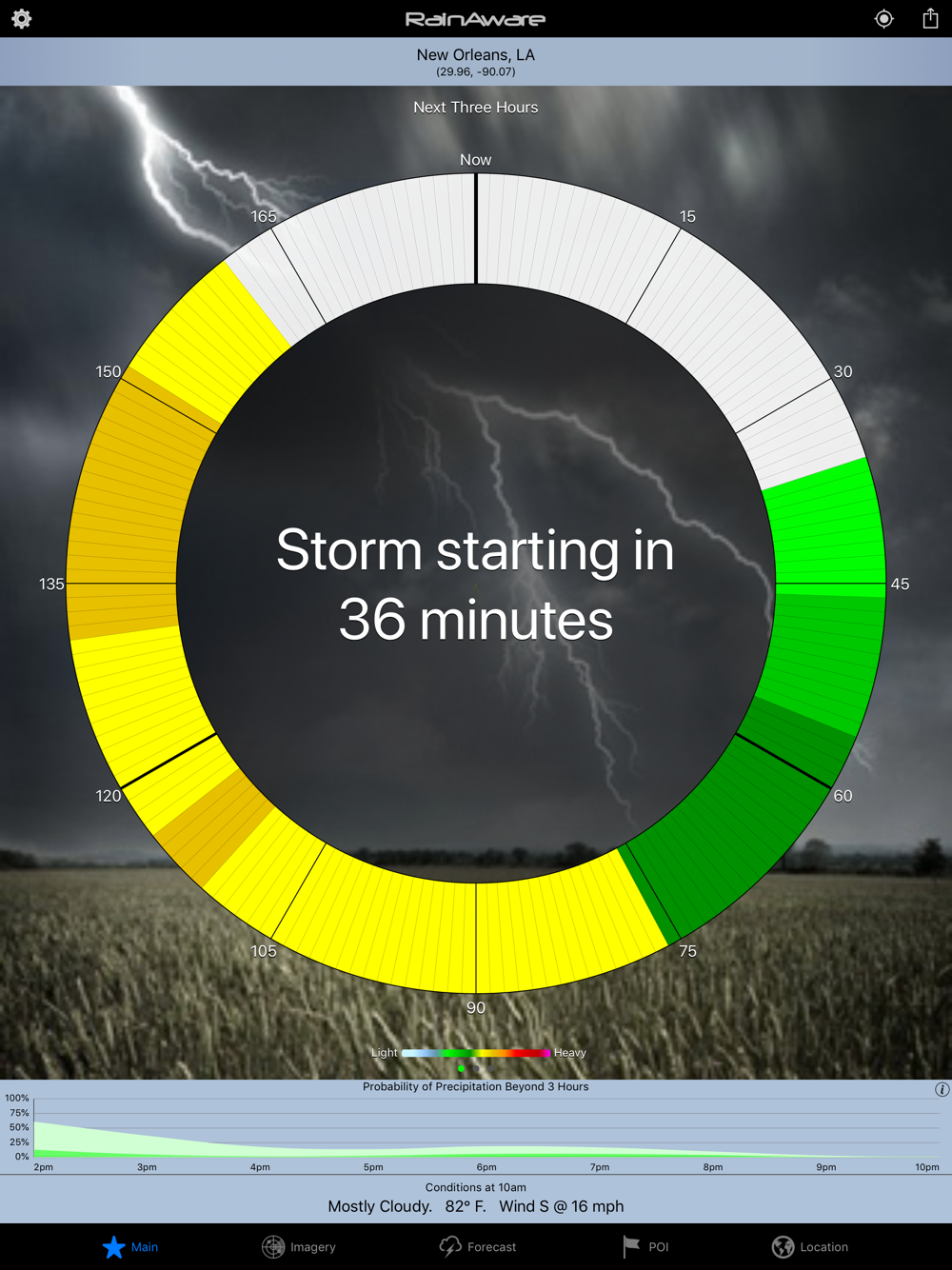 Stop wondering and start KNOWING. Time rain and storms to your exact location with RainAware. RainAware updates quickly to stay ahead of changing weather. We create a customized forecast just for you. Skies look dark? Doesn't always mean rain. Don't be surprised again, know for sure!