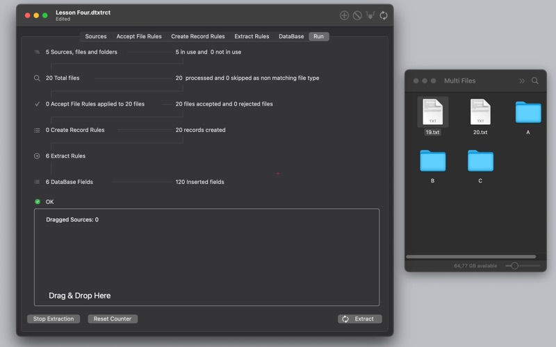 • Extract data from files one by one, also dragging them via Drag & Drop