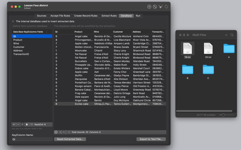 Data Extractor allows to extract data contained inside text documents and collect them in an internal organized table with fields and records.