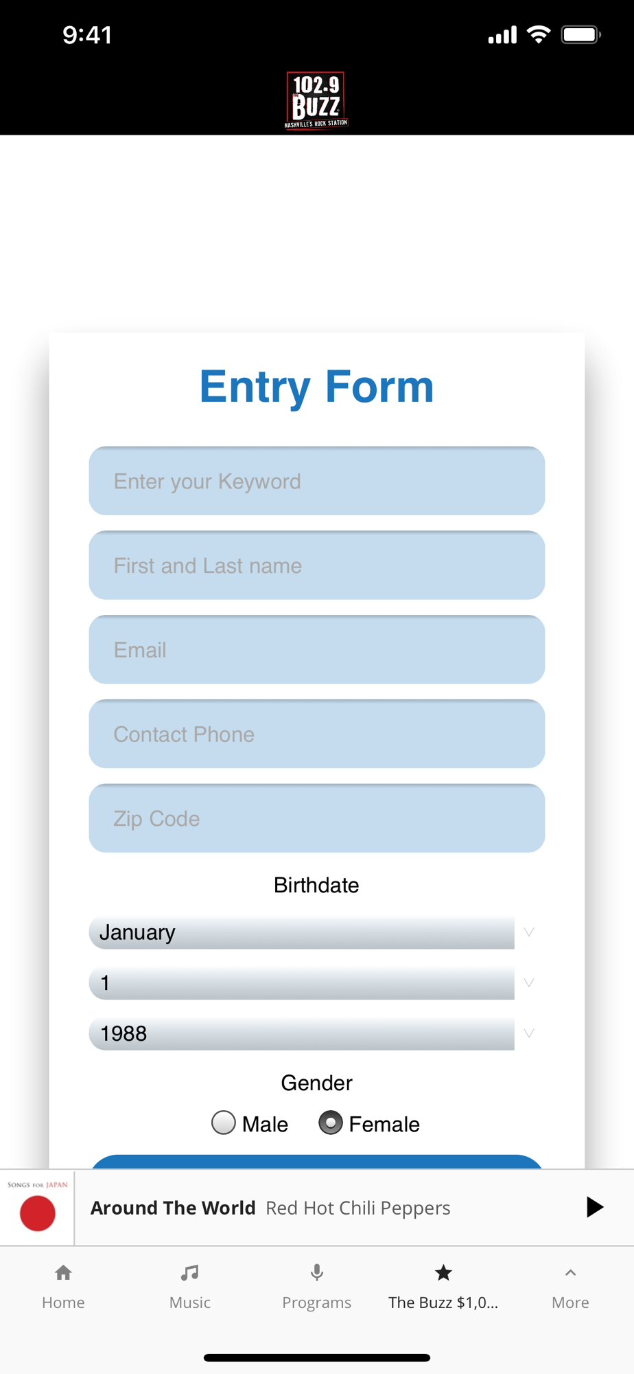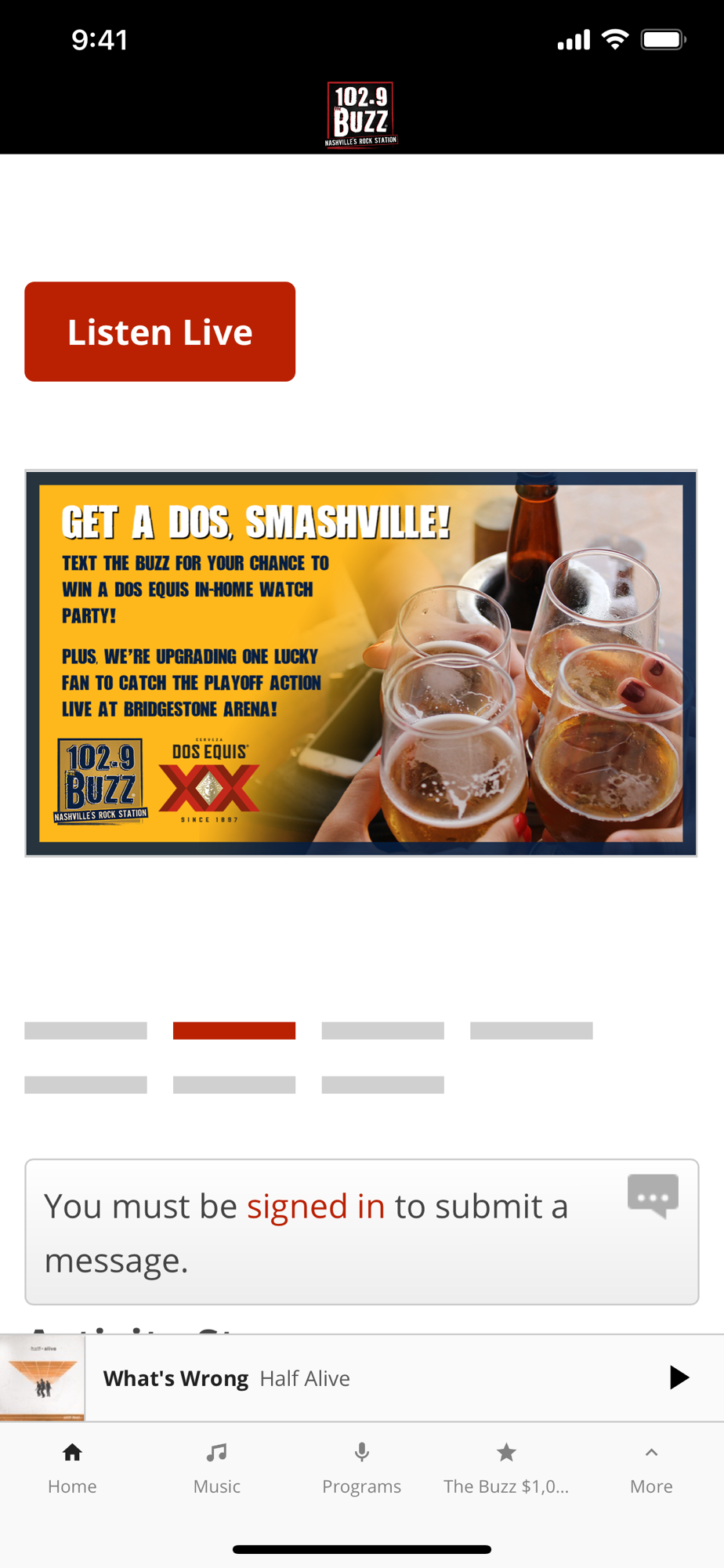 Straight out of Music City, USA, 102.9 The Buzz is Nashville's Rock station! You've found your home for Free Beer & Hot Wings in the morning, plus Metallica, Nirvana, Linkin Park, Red Hot Chili Peppers, Foo Fighters, The Black Keys, Guns N' Roses, Muse, Alice In Chains, Green Day & more! Listen to us from anywhere in the world here on your App, or from your PC at www.1029thebuzz.com. The Buzz gives you a front row seat to the Nashville Lifestyle & the music that compliments it! Thanks for downloading us to your phone!