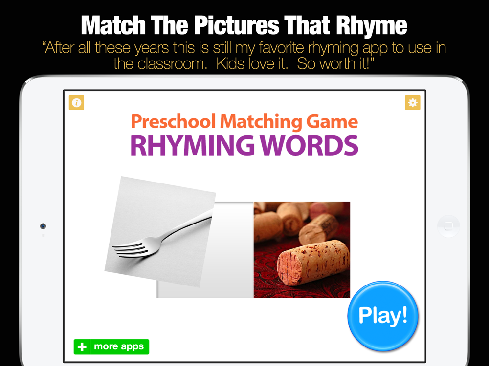 The application also includes great audio reinforcements by congratulating the child each time they successfully match a pair that rhymes