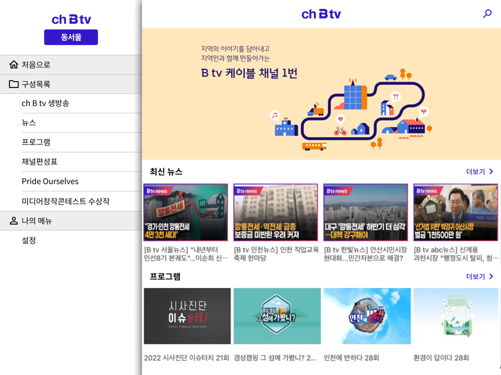 - 우리동네 B tv가 제작한 프로그램을 보실 수 있습니다.
