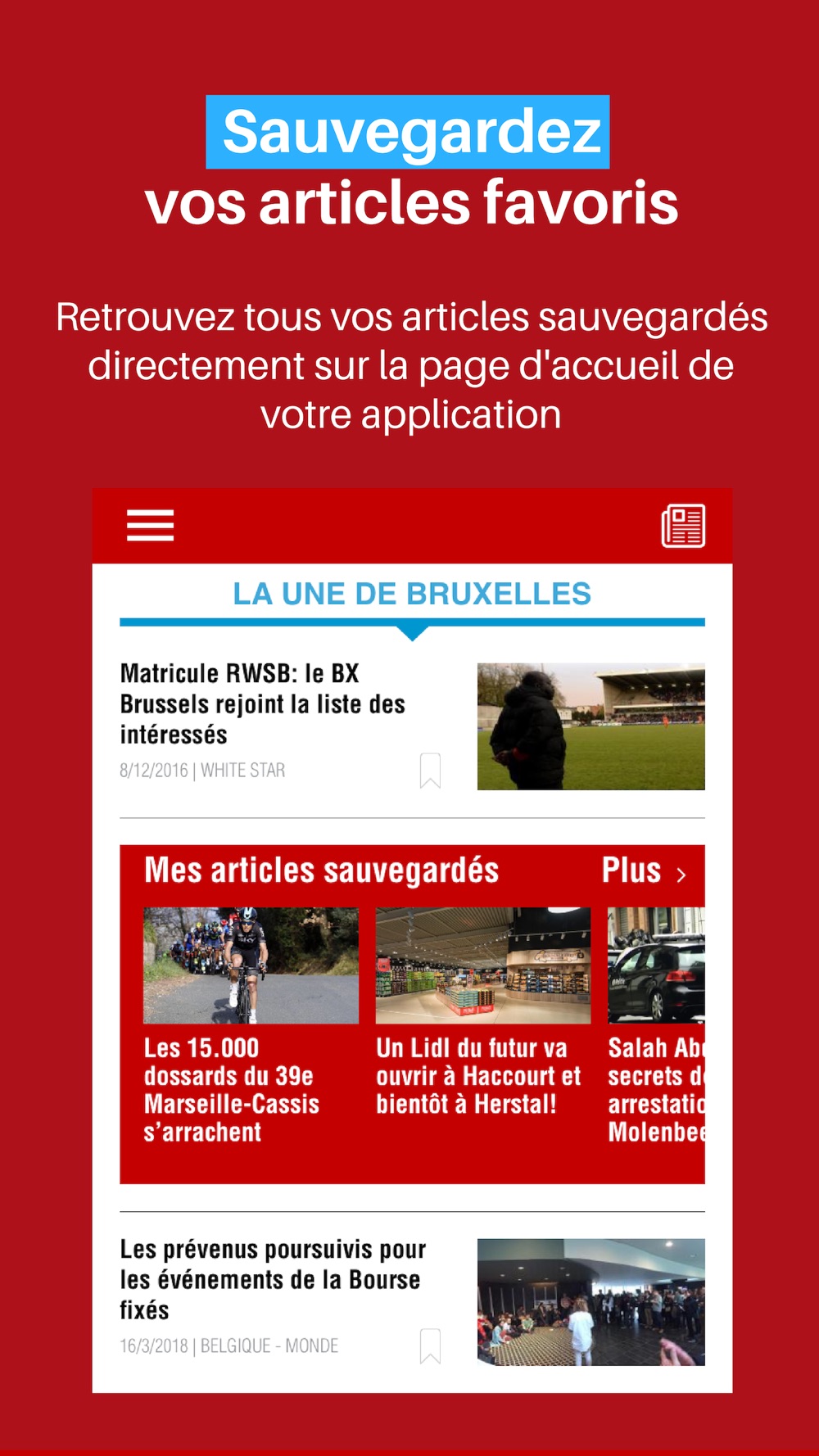 - Sauvegardez les articles et journaux de votre choix pour les lire et relire à votre meilleure convenance, même sans connexion internet et retrouvez-les ensuite sur votre page d’accueil