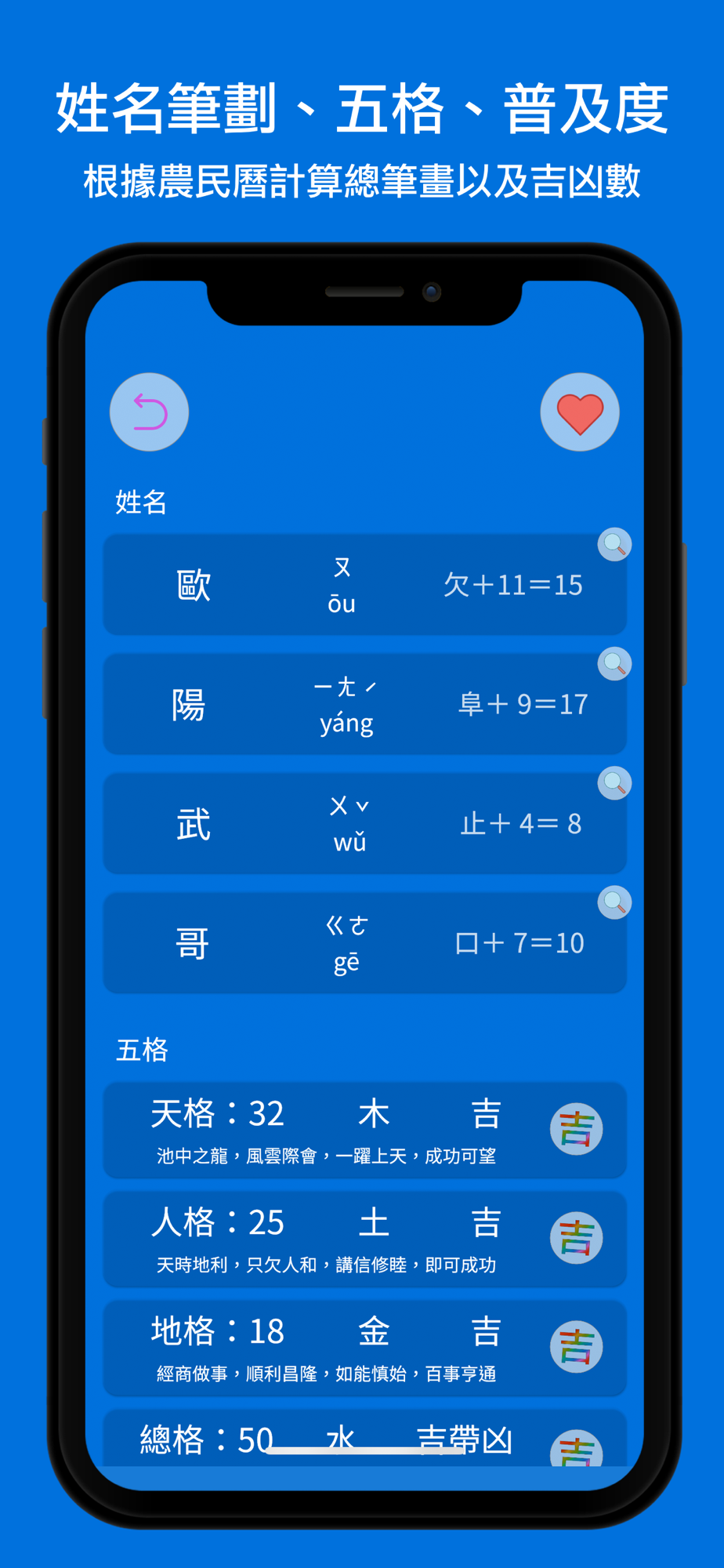 - 農民曆計算每個名字的總筆畫以及最後的吉凶數