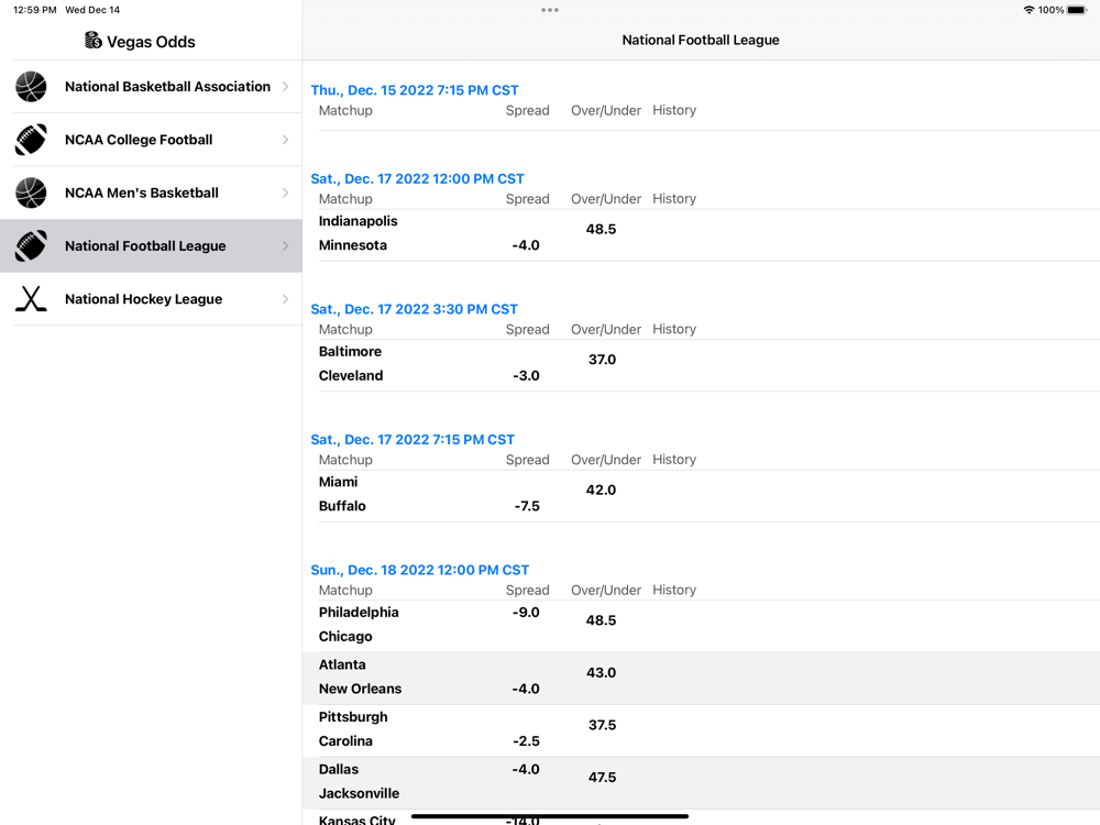 This handy app allows you to to monitor the Las Vegas odds on major sporting events: professional and college football, baseball, basketball and hockey.