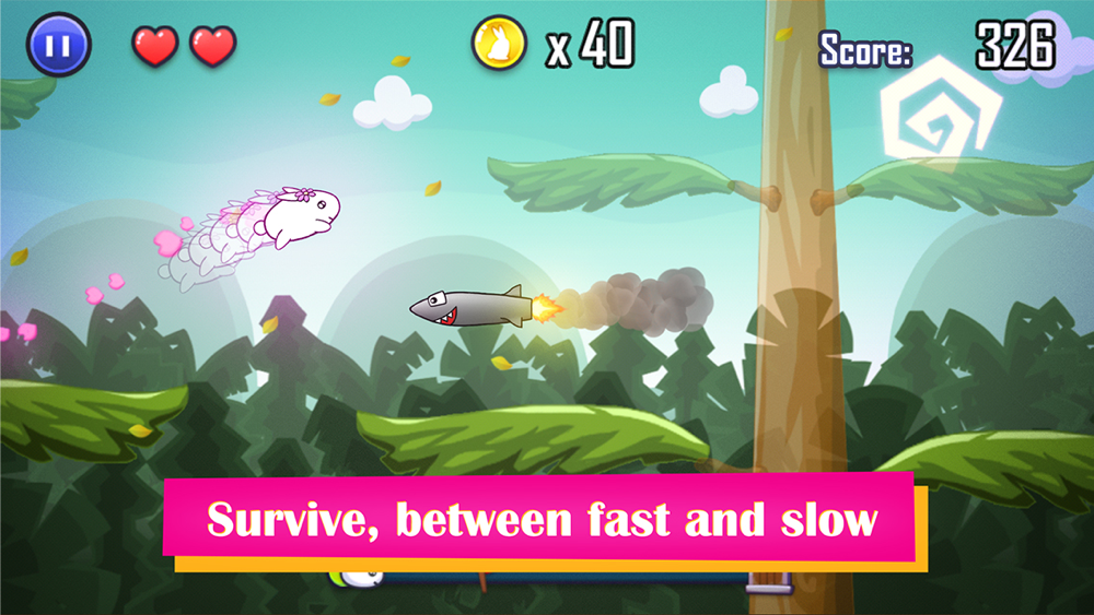 Innovative game play compared to classical platform game. Adjust Bunny running speed by tilting horizontally to flee from various enemies.