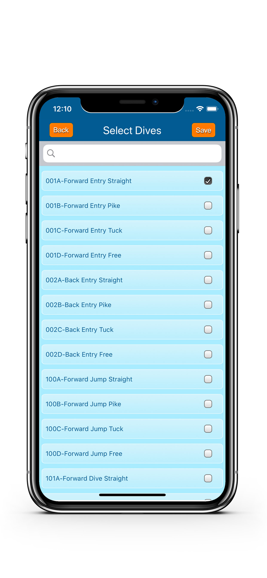 * Handy search feature to locate dive types by dive number or description.