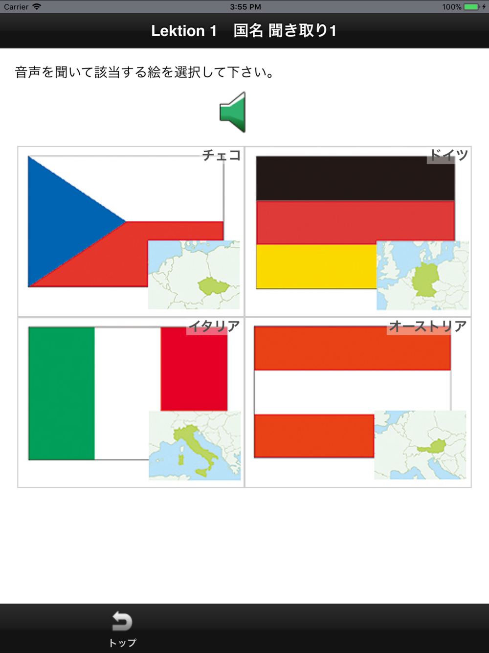 大好評ドイツ語初級教科書、朝日出版社『クロイツング・ネオ』の「ことばの宝箱」コーナーに掲載されている分野別単語を、イラストとネイティブ・スピーカーの発音で習得できるアプリケーションです。