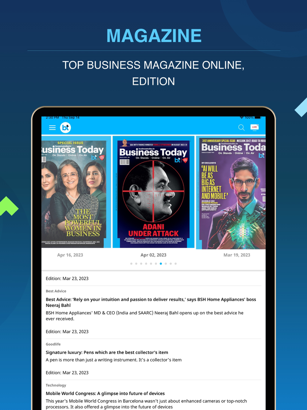 Business Today is India’s leading fortnightly business news magazine published by Living Media India Limited. The magazine belongs to the India Today Group and was first published in 1992.