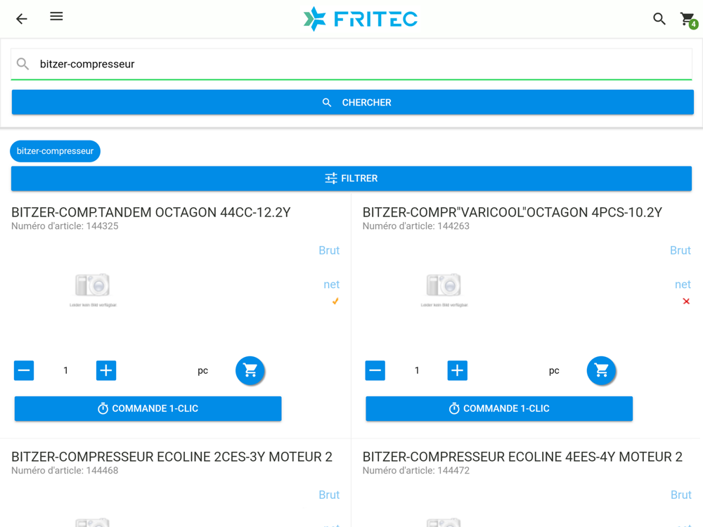 - Affichage des agences FRITEC les plus proches ayant ce produit en stock