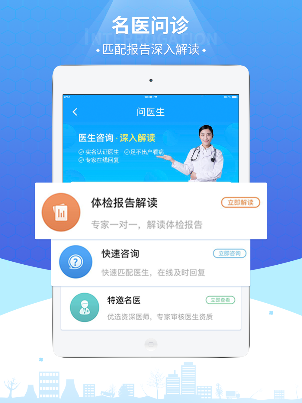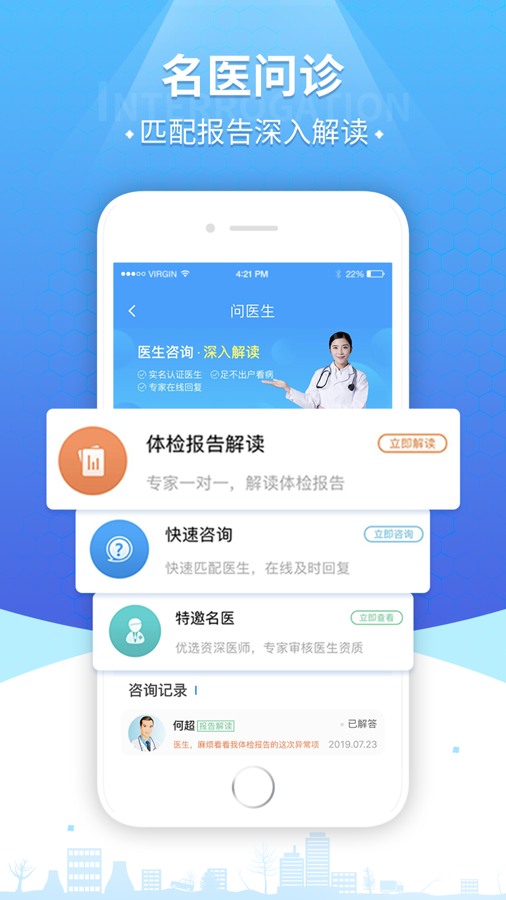 2000+医院体检报告轻松查,名医深入解读报告,针对异常项提供个性化健康方案;