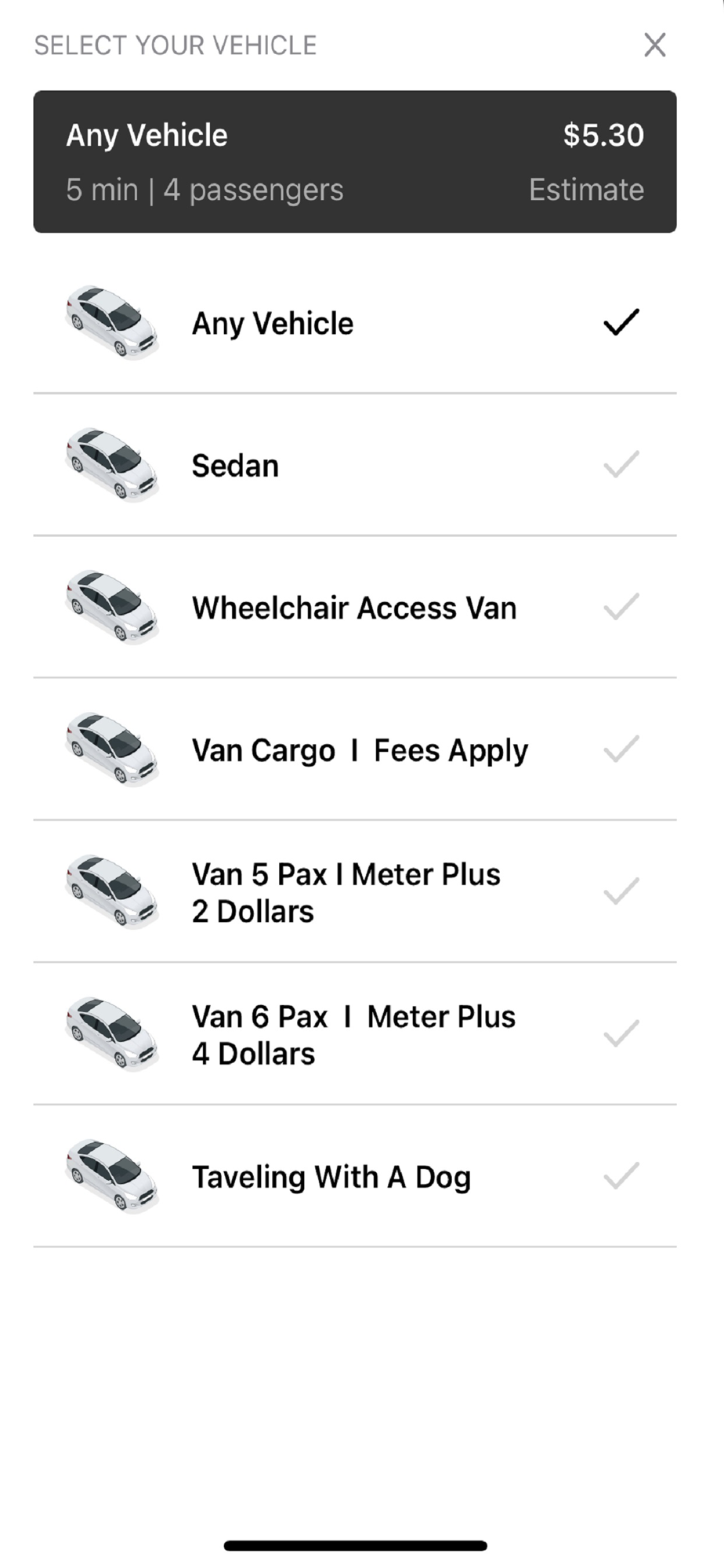 • Enter your destination address (this allows us to provide an estimated fare amount)