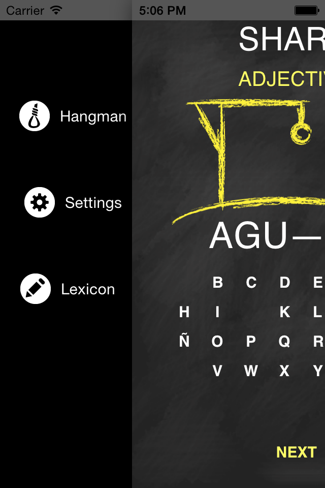 The game comes with a list of over 800 commonly used Spanish words, and the ability to add new words, as well as group words by category.