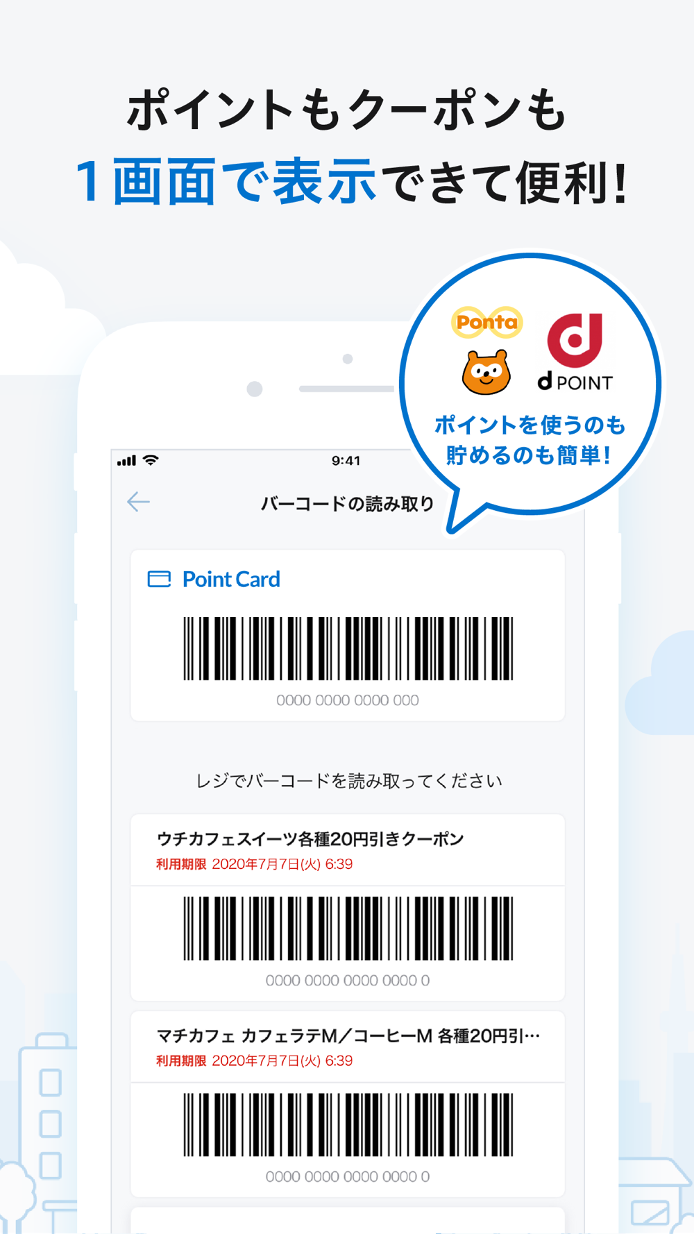◆ ポイントカードも復活!クーポンと一緒にバーコード表示できるので、お支払いが便利に!