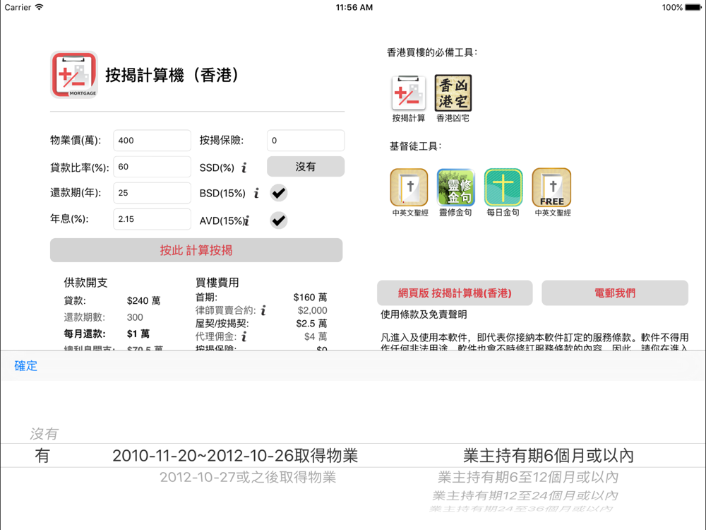做個精明買家,買樓前當然要計算首期、貸款、每月還款、利息等按揭開支,輕輕一按就能計算到首期及按揭開支等金額,香港按揭計算機絕對可以幫到您!