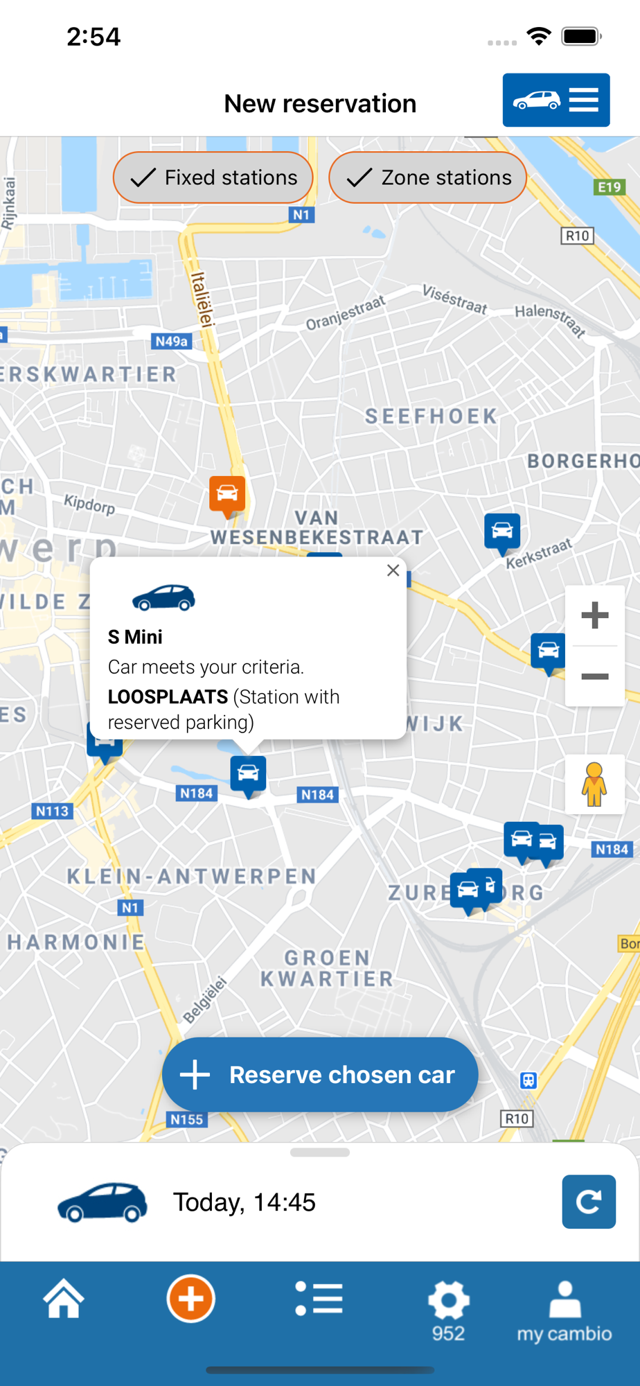 With the cambio app you can find the available vehicles in your area and immediately reserve the next free car at the station of your choice, extend or cancel existing bookings. With the app you can also conveniently open vehicles with an on-board computer without your cambio card.