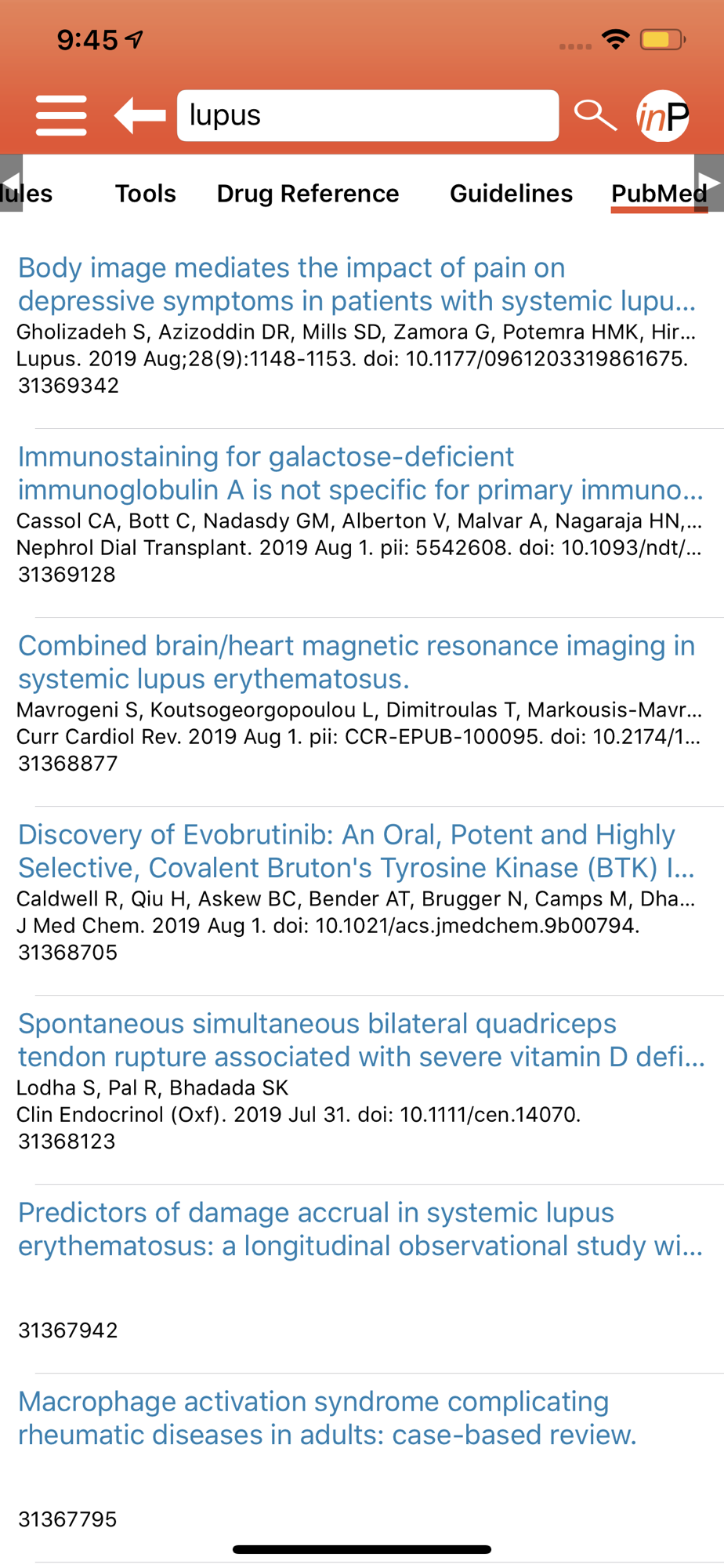 • A single search yields results from multiple clinical databases: inPractice expert-authored content, relevant decision support tools, drug reference, guidelines, PubMed abstracts and clinical