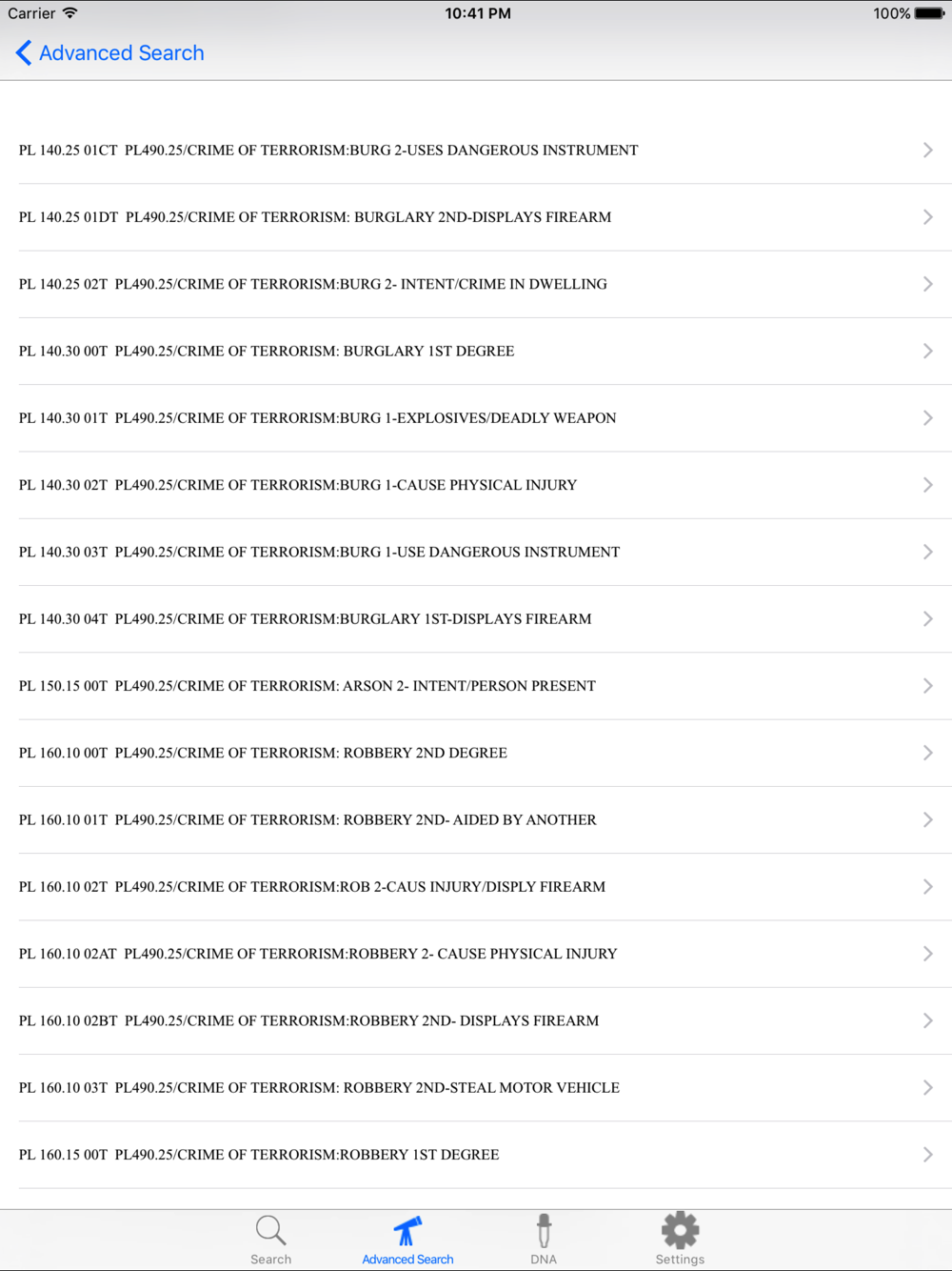 New York State Division of Criminal Justice Services (DCJS) LAW CODE File as of JULY 1, 2020. Contains Penal law codes with an option to quickly search for law codes. Provides advanced Search capability with commonly used criteria. Search support partial search terms also.