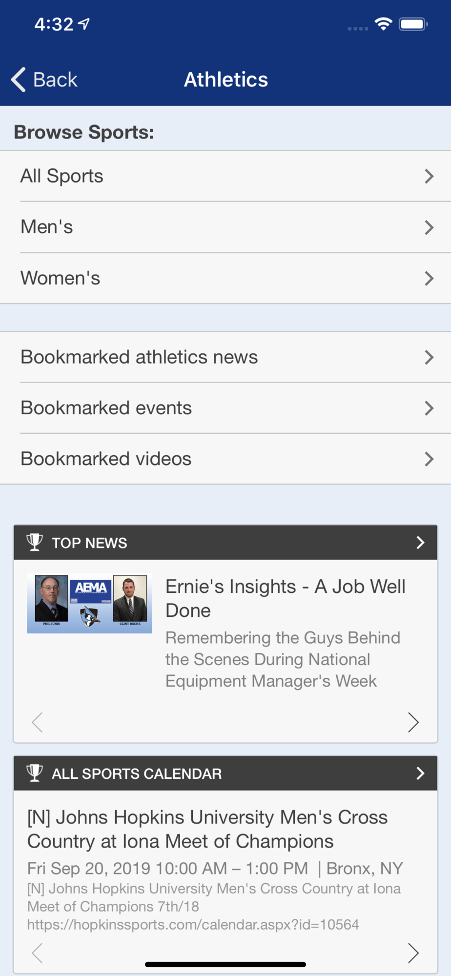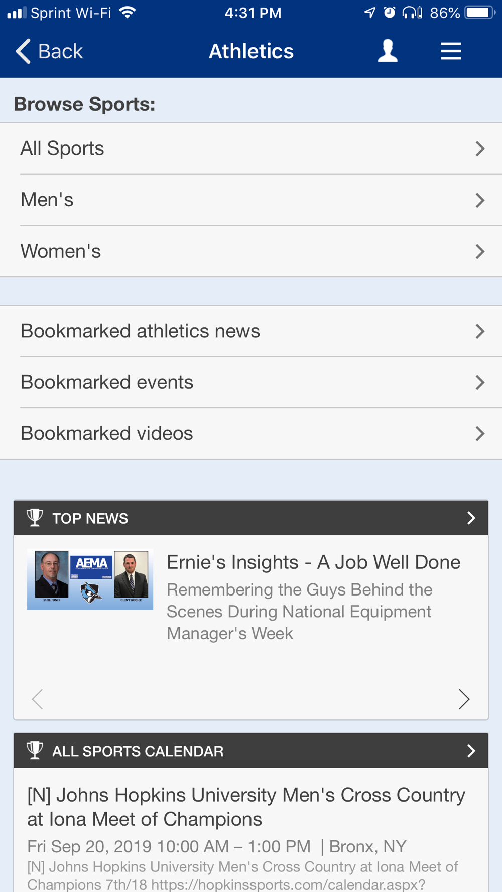 Athletics - a real-time feed of Hopkins Sports news and schedules, separated by team