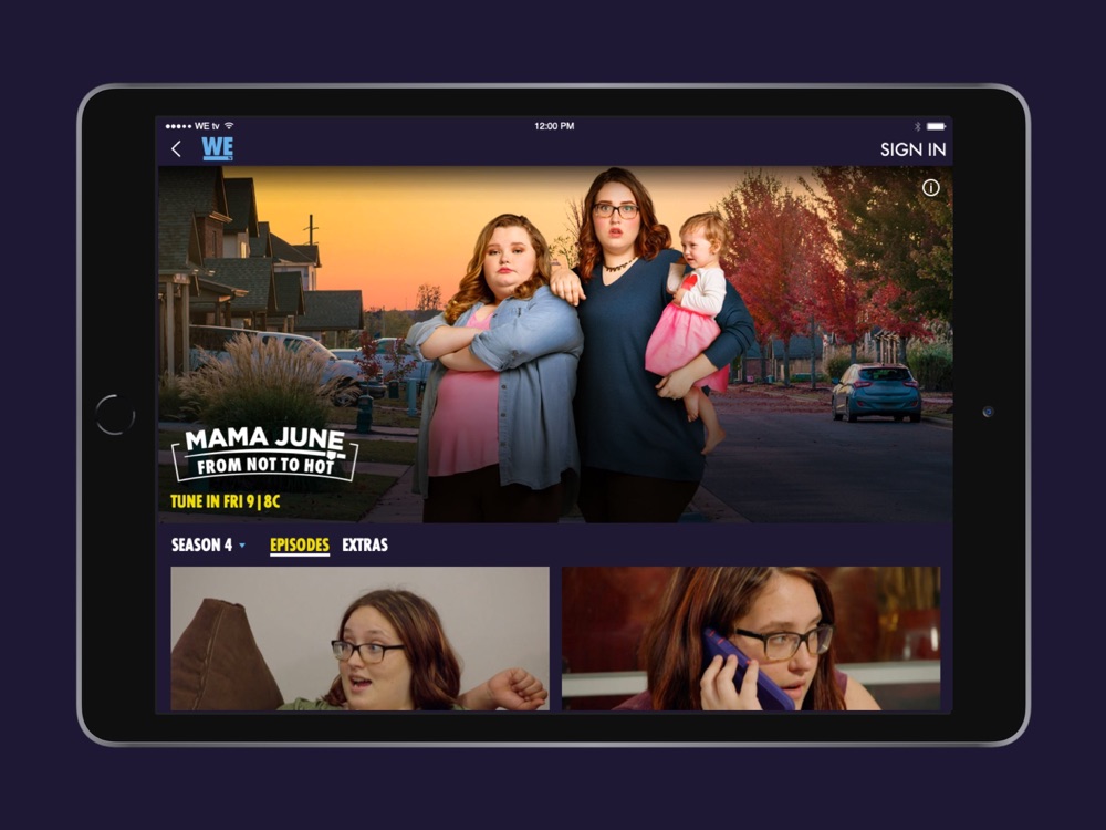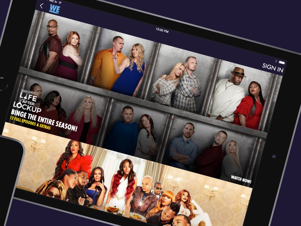 Sign in with your cable provider and get your WE tv fix whenever and wherever you want it! Find new favorites, stream Live TV, and stay current with the latest full episodes and video extras from WE tv Original Series. Full episodes are available in-season, with no login required for season premieres and video extras like trailers, sneak peaks and deleted scenes!
