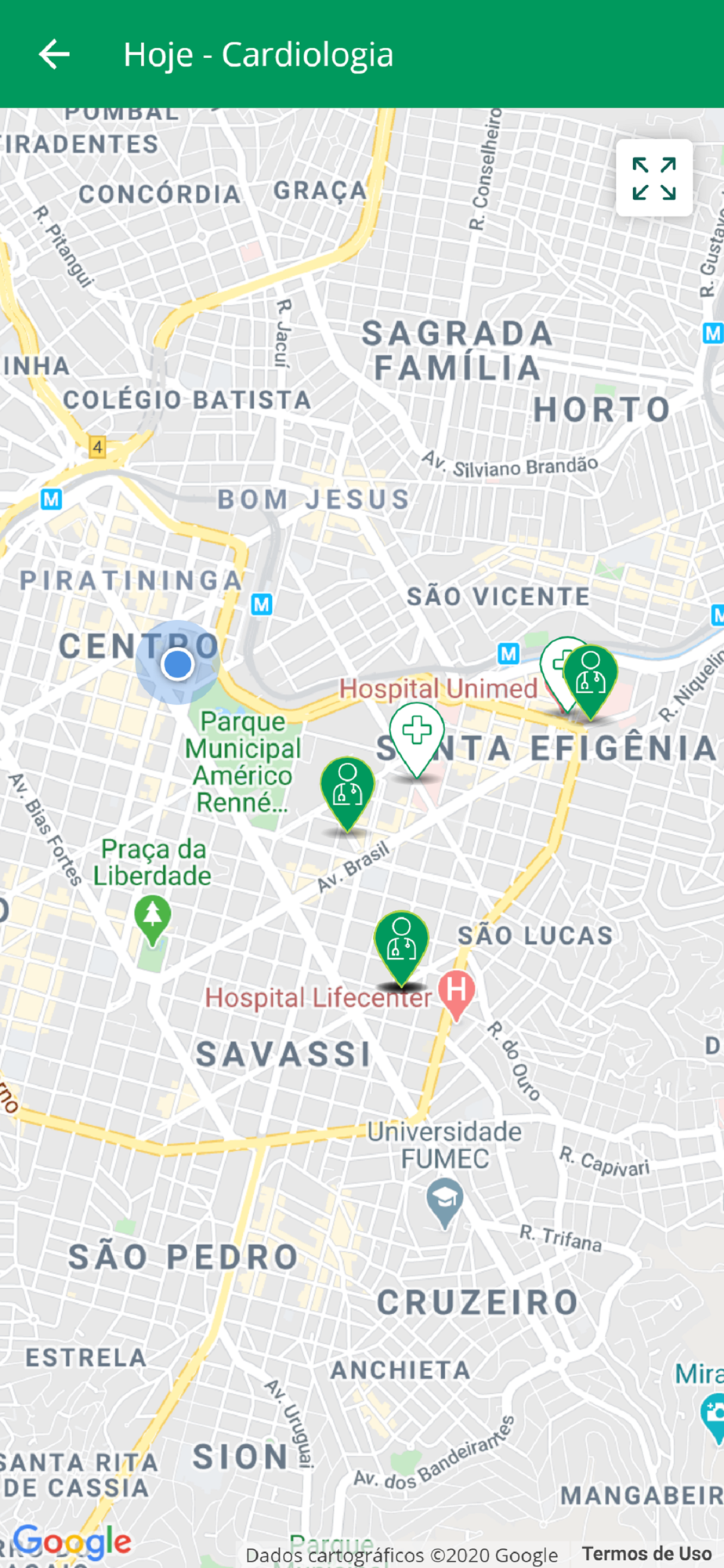 :: Mapa e geolocalização: mapa com toda a rede própria e credenciada sinalizada.