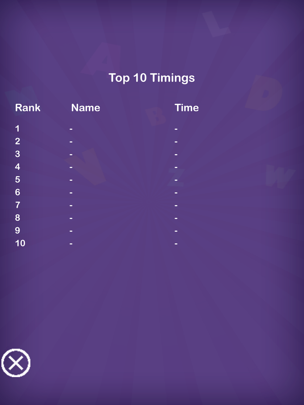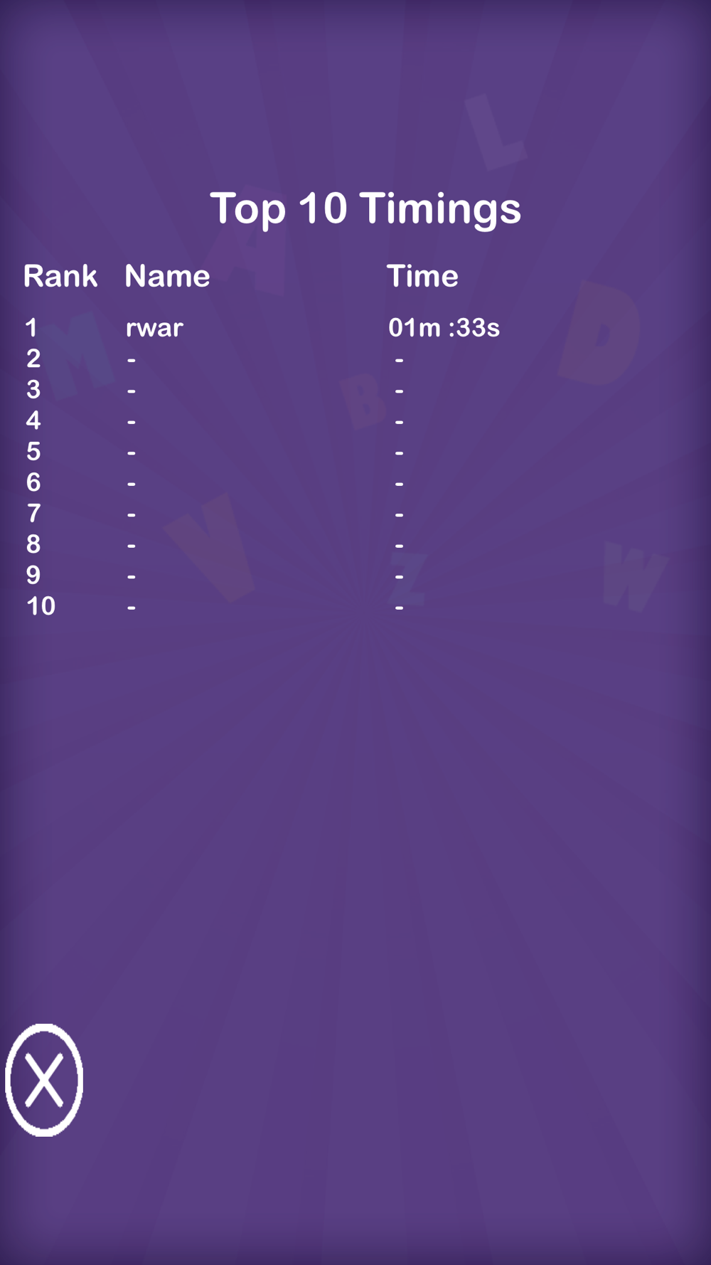 * Save your top ten timings.