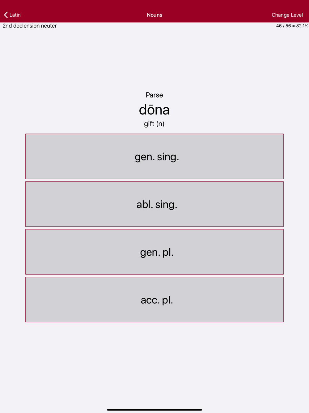 Liberation Philology Latin drills you on Latin vocabulary and grammar, through a continuous multiple-choice test that's instantly available wherever you have your phone and a free moment. Your answers are immediately confirmed or corrected, and reinforced through repetition.