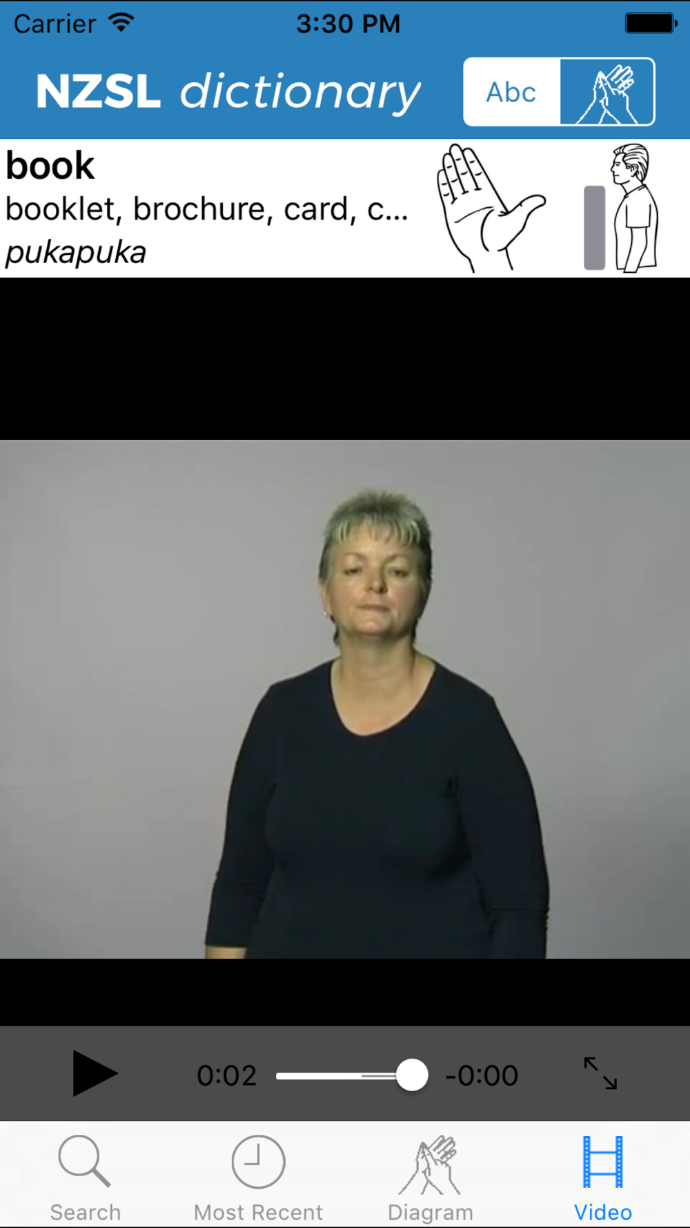 New Zealand Sign Language Dictionary contains diagrams and videos for over 4,000 English words and phrases.