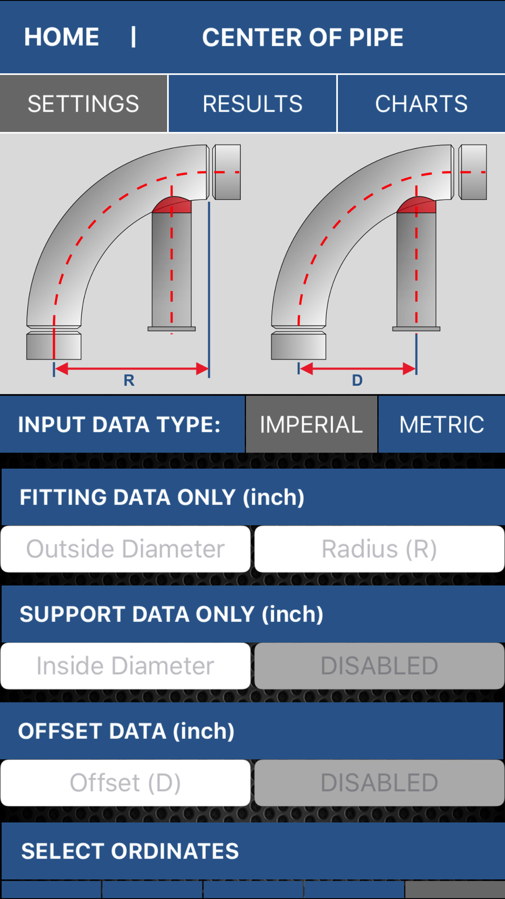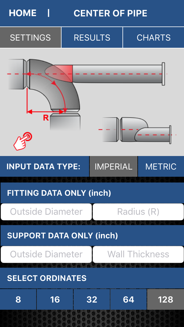 Pipe Support Calculator - Quickly calculate 8 to 128 ordinates for custom cut pipe to attach to the back of a 90 degree fitting.