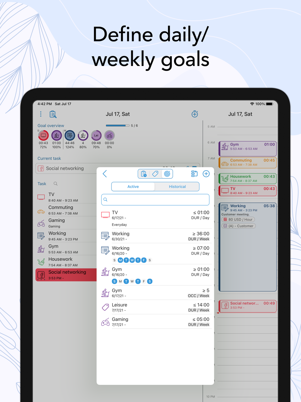• Customization of activities with hundreds of unique icons to choose from. You can also color code the activities for a personalized time tracking experience.