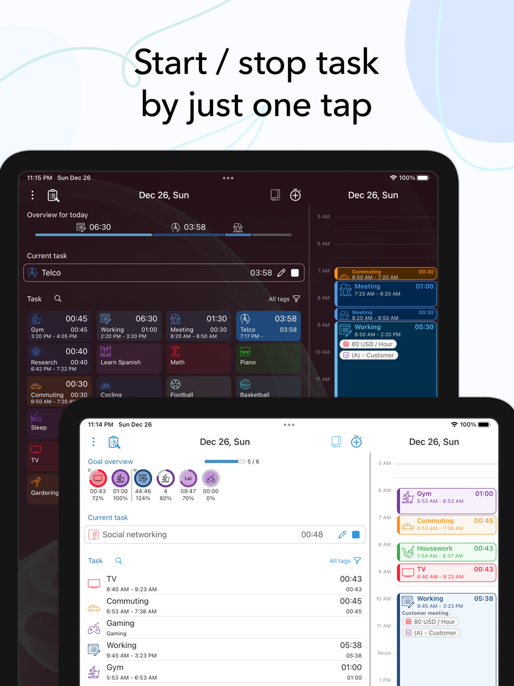 ATracker is a simple yet very powerful time tracking app and productivity tool that allows you to use it with minimal setup. Having a track of your precious time has never been easier with our one-tap to start/stop time tracking. As the leading time tracking app, ATracker also offers bar or pie charts showcasing where your time went.