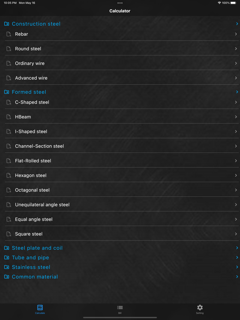A professional tool for calculating weight of steel, according to the steel models or parameters to automatically calculate the weight, price. Each of the calculated results will be saved in history in order to facilitate inquiries.