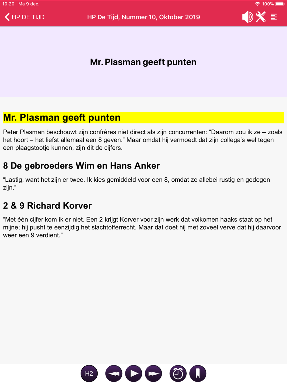 Uw lectuur kan worden afgespeeld in achtergrondmodus, dus u kunt blijven luisteren terwijl u uw mail checkt of een andere app gebruikt. Vanuit de ingeschakelde schermbeveiliging kunt u eenvoudig de audio pauzeren en navigeren op hoofdstukniveau. Tevens wordt hier de titel van het boek, tijdschrift of krant getoond en welk hoofdstuk of rubriek u op dat moment hoort.