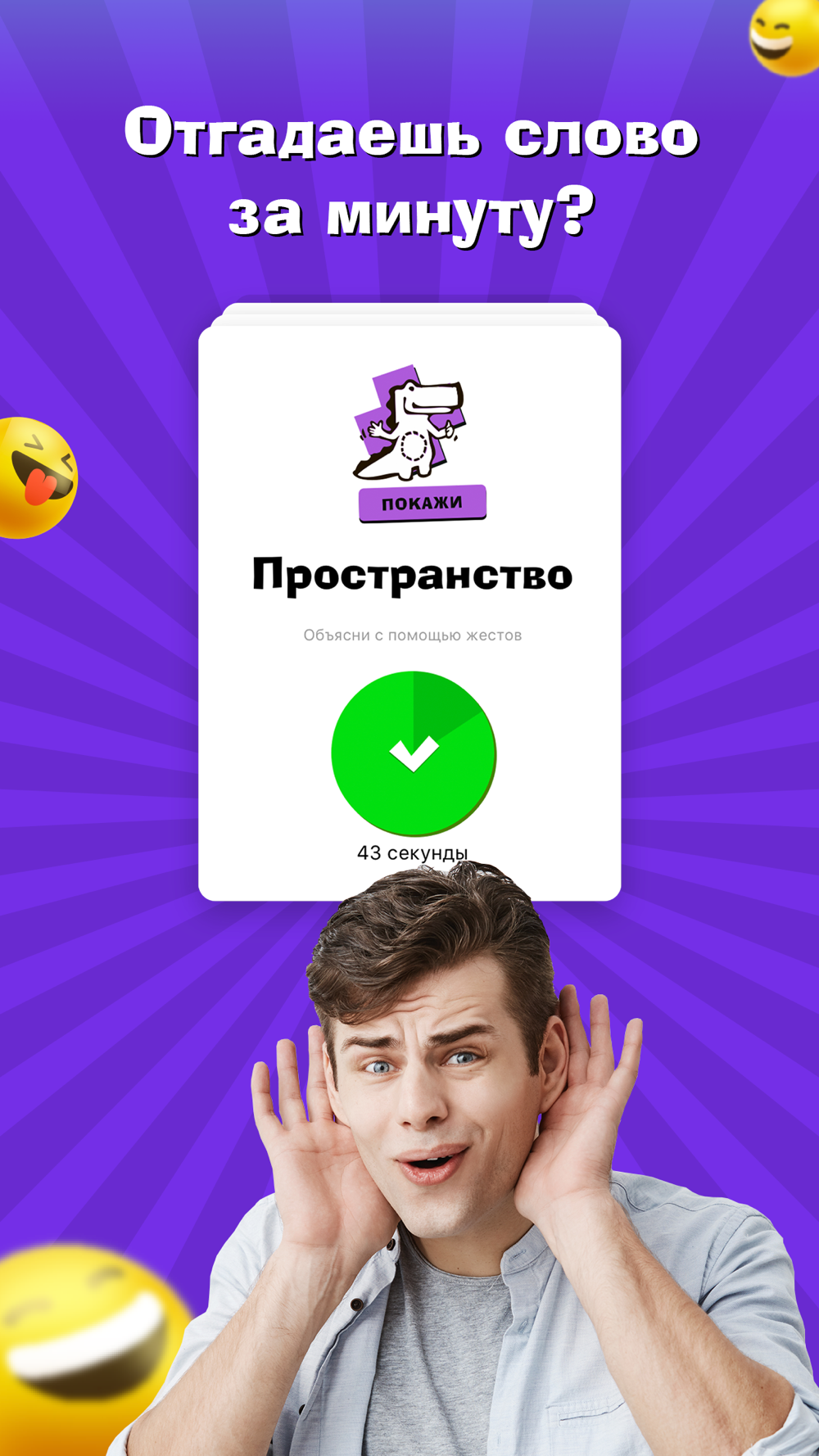 В игре 6500 заданий. Три разных типа. Карты «покажи» — соответственно, на показ жестами; «нарисуй» — вы пробуете нарисовать слово за минуту, а «объясни» — объясняете синонимами.