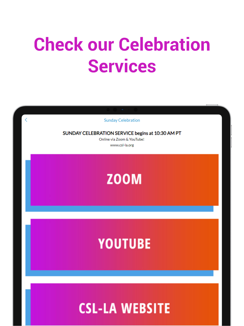 Download this app and stay connected to the CSL Los Angeles community anytime, anywhere.