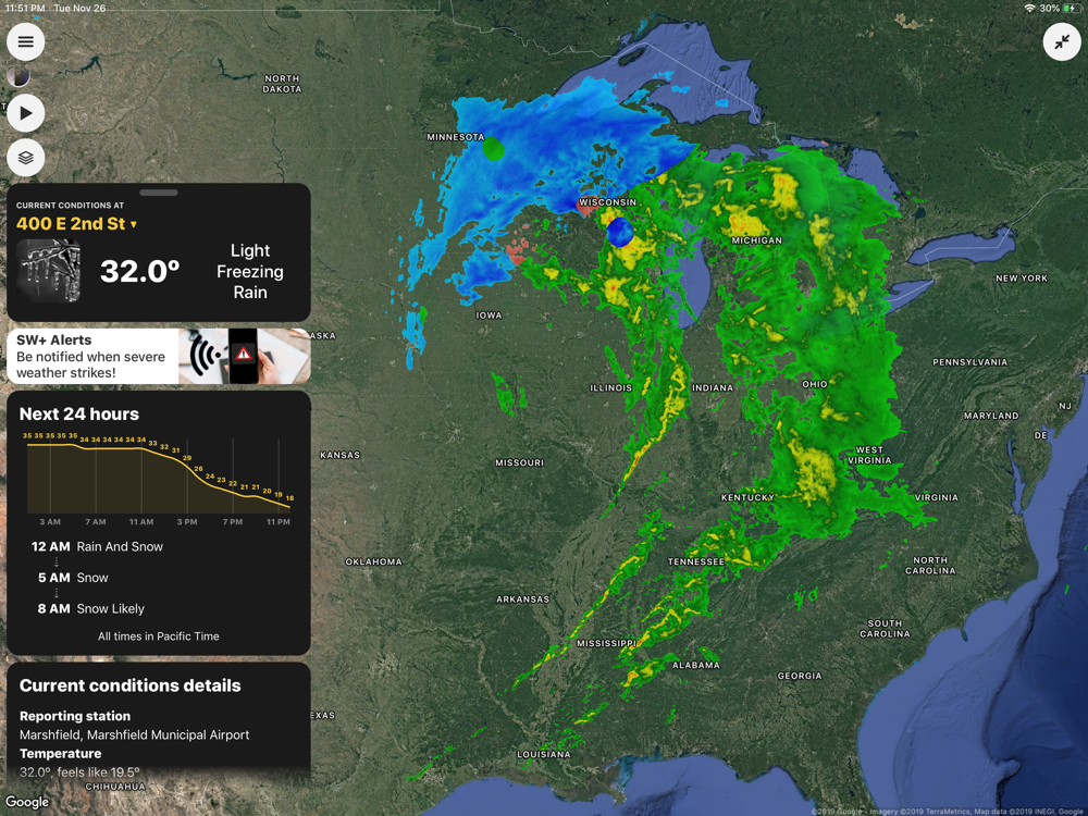 For the ultimate severe weather preparation tool, check out our (also upgraded!) alerting technology, SW+ Alerts. SW+ Alerts is a life-saving service that sends you push notifications whenever hazardous weather threatens your specific location. Once again relying on the expertise of over 2,000 NWS meteorologists nationwide, SW+ Alerts compares multiple specific locations you select with weather watches and warnings issued by your local NWS office. Alerts are sent to the app ONLY if you are in the path of hazardous weather, eliminating the confusion associated with county-wide warning sirens or NOAA Weather Radio alerts. Simply tapping on a push alert will show your location with respect to the warning boundaries on a map, as well as display the full text of the alert. In addition, Critical Alerts “wake-me-up” audio and voice alerts will sound for the most severe warnings.^