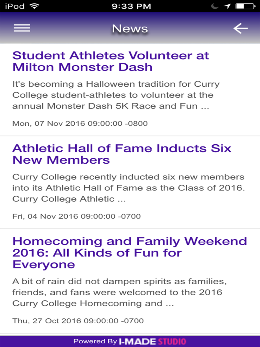 Events: Find and keep track of a wide range of Curry College activities, from concerts and art exhibits to guest lectures.